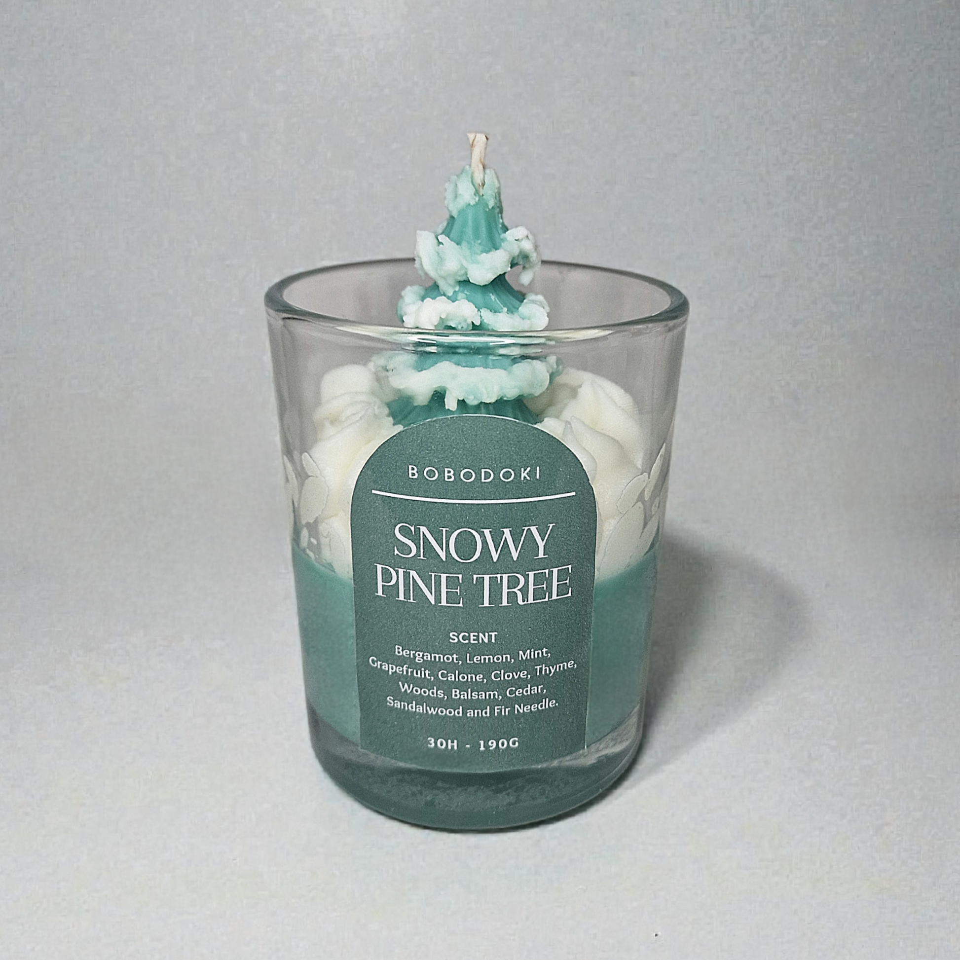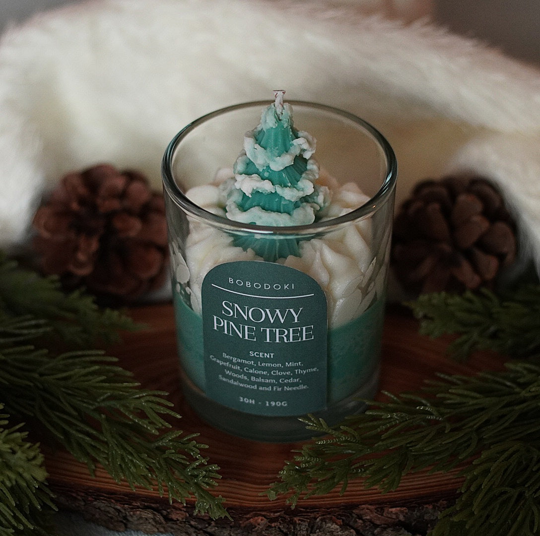 Þetta kerti er handsteypt, skreytt með snæviþakinni furu og handsprautuðu hvítu snjóvaxi, og lítur út eins og smækkað vetrarlandslag.