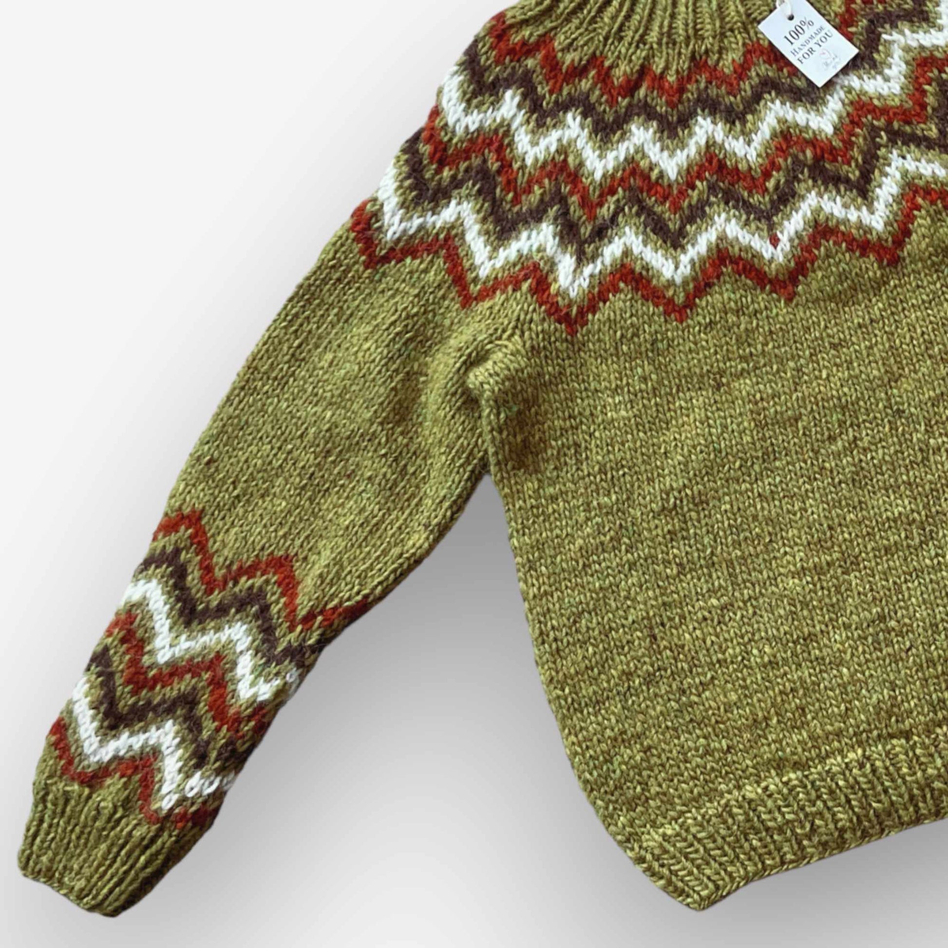 This sweater is handcrafted using premium Icelandic Álafosslopi Wool yarn, renowned for its thickness, making it the coziest and warmest choice. This exceptional sweater is ideally suited for outdoor adventures, providing unparalleled insulation with its thick texture while maintaining a surprisingly lightweight and comfortable feel.